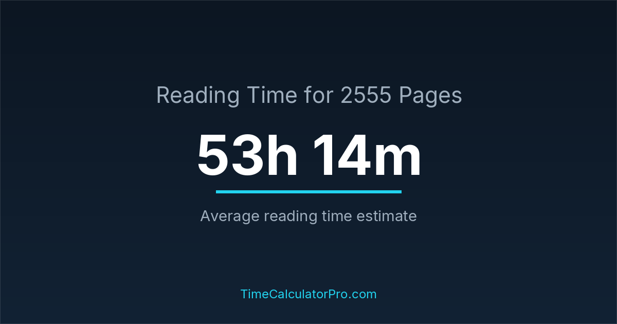 Reading 2555 pages takes about 53 hours and 14 minutes.