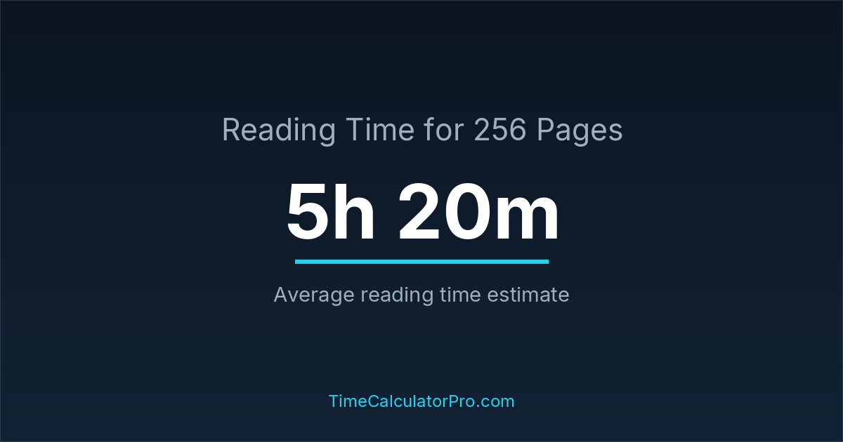 The time required to read 256 pages is typically around 5 hours and 20 minutes when using an average reading speed of 200 words per minute.