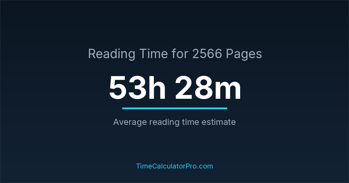 If you read at an average speed of 200 words per minute, reading 2566 pages will take approximately 53 hours and 28 minutes. This estimate assumes around 250 words per page, which is typical for most books.