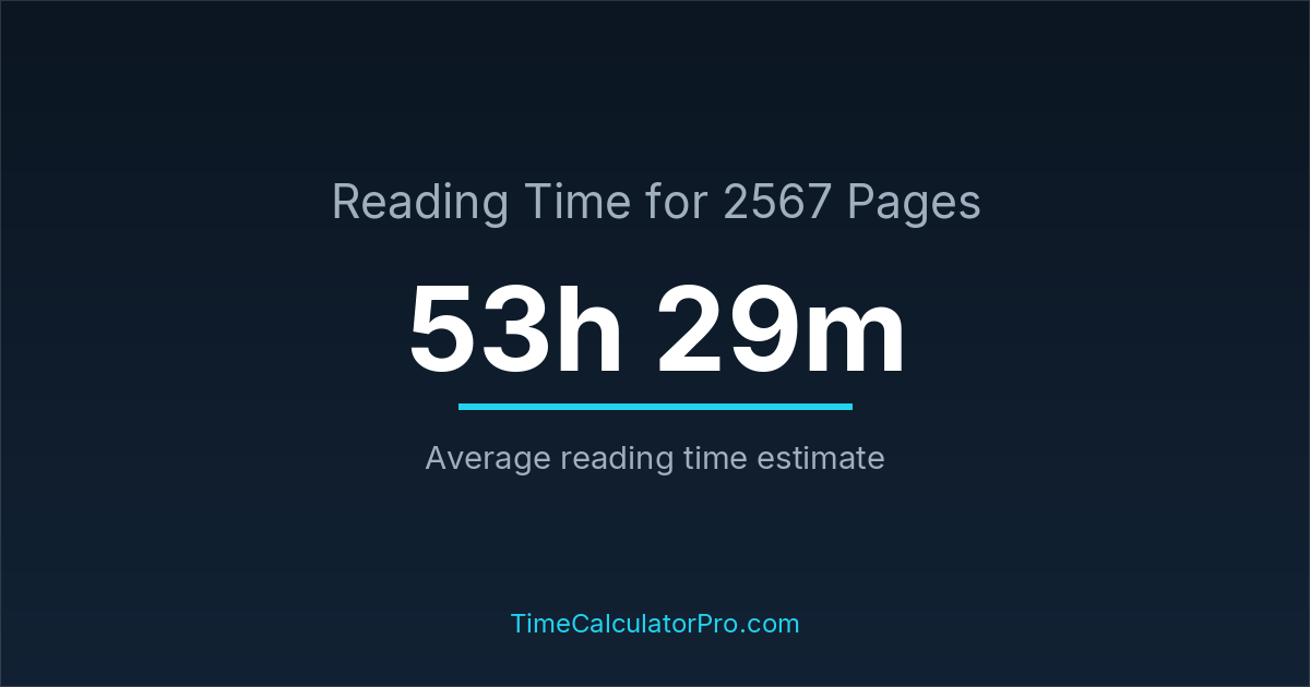 Reading 2567 pages takes about 53 hours and 29 minutes.