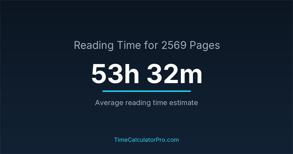 The average reading time for 2569 pages is about 53 hours and 32 minutes, but this can change depending on the difficulty of the text.