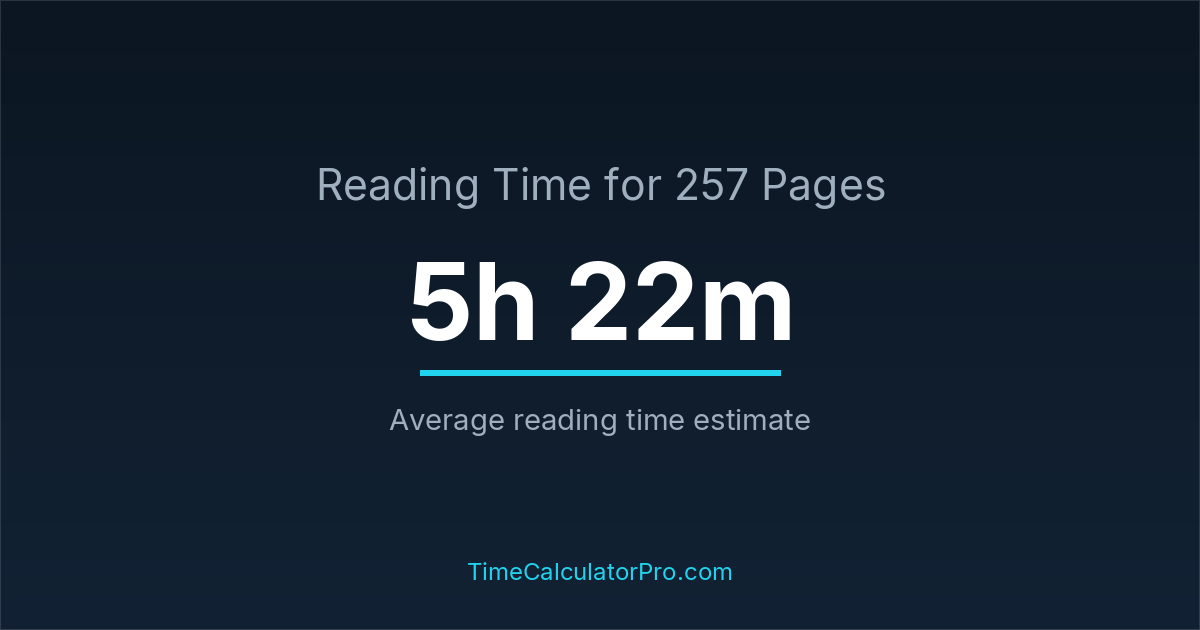 Estimating how long it takes to read 257 pages can help you plan your reading schedule, with an average time of 5 hours and 22 minutes.