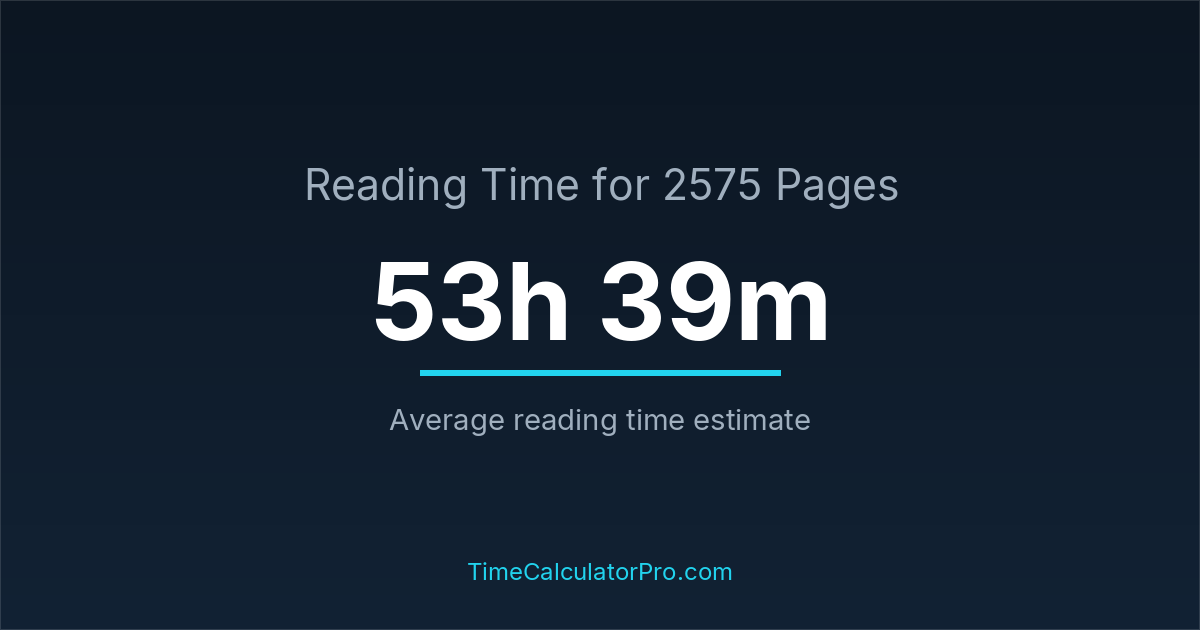 If you read at an average speed of 200 words per minute, reading 2575 pages will take approximately 53 hours and 39 minutes. This estimate assumes around 250 words per page, which is typical for most books.
