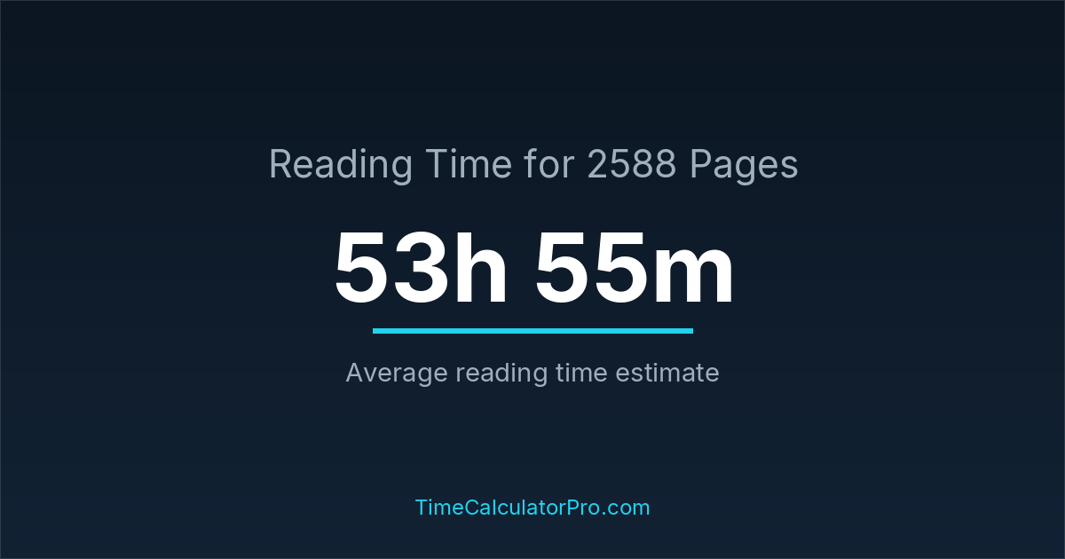 If you are wondering how long it takes to read 2588 pages, the estimated reading time is roughly 53 hours and 55 minutes based on common reading speed averages.