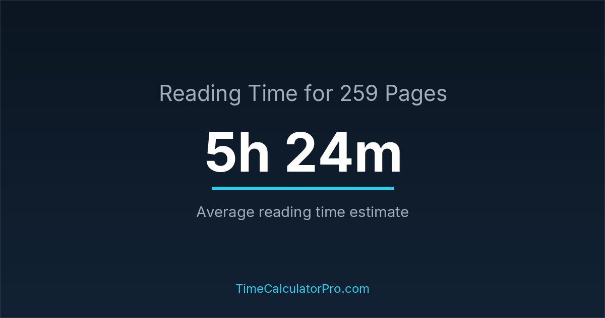 A reading time calculator helps estimate how long it will take to complete 259 pages before you even begin reading, allowing you to plan your time more effectively.
