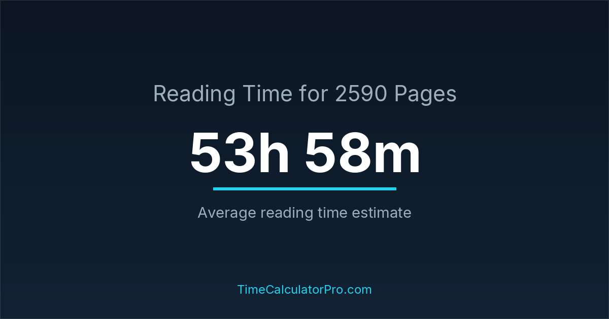 Using a reading time calculator, you can estimate that 2590 pages will take around 53 hours and 58 minutes to complete.