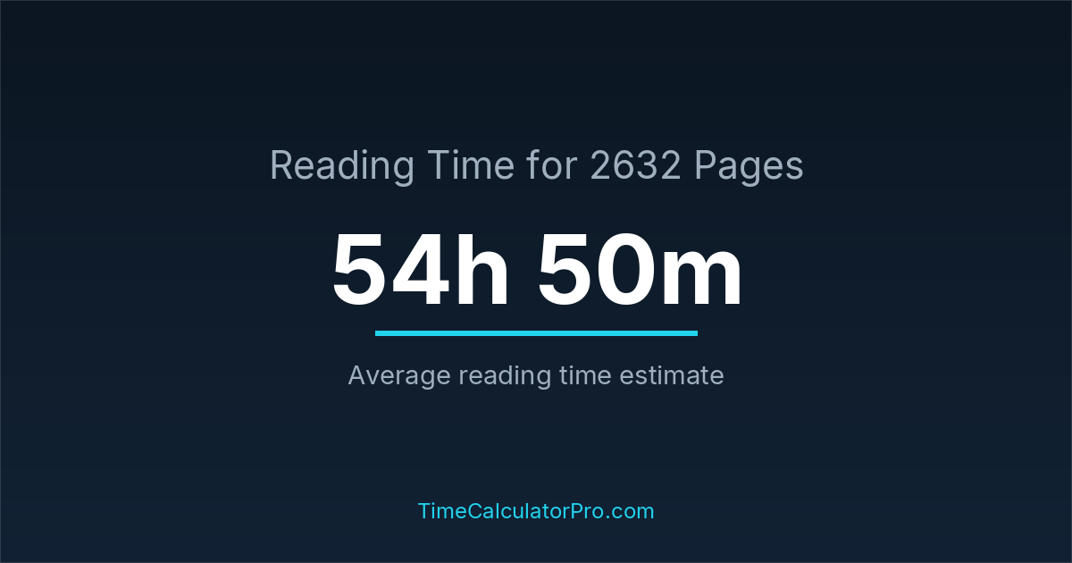 Reading 2632 pages usually takes approximately 54 hours and 50 minutes for the average reader, though this can vary depending on concentration and reading habits.