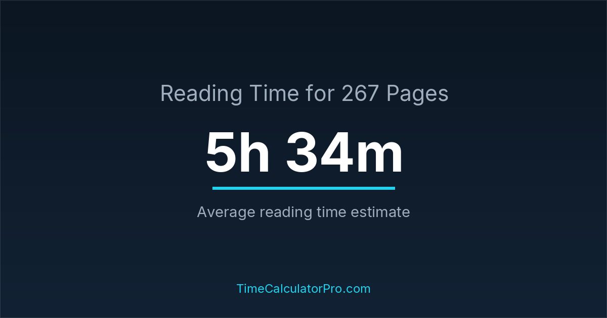 Reading 267 pages usually takes approximately 5 hours and 34 minutes for the average reader, though this can vary depending on concentration and reading habits.