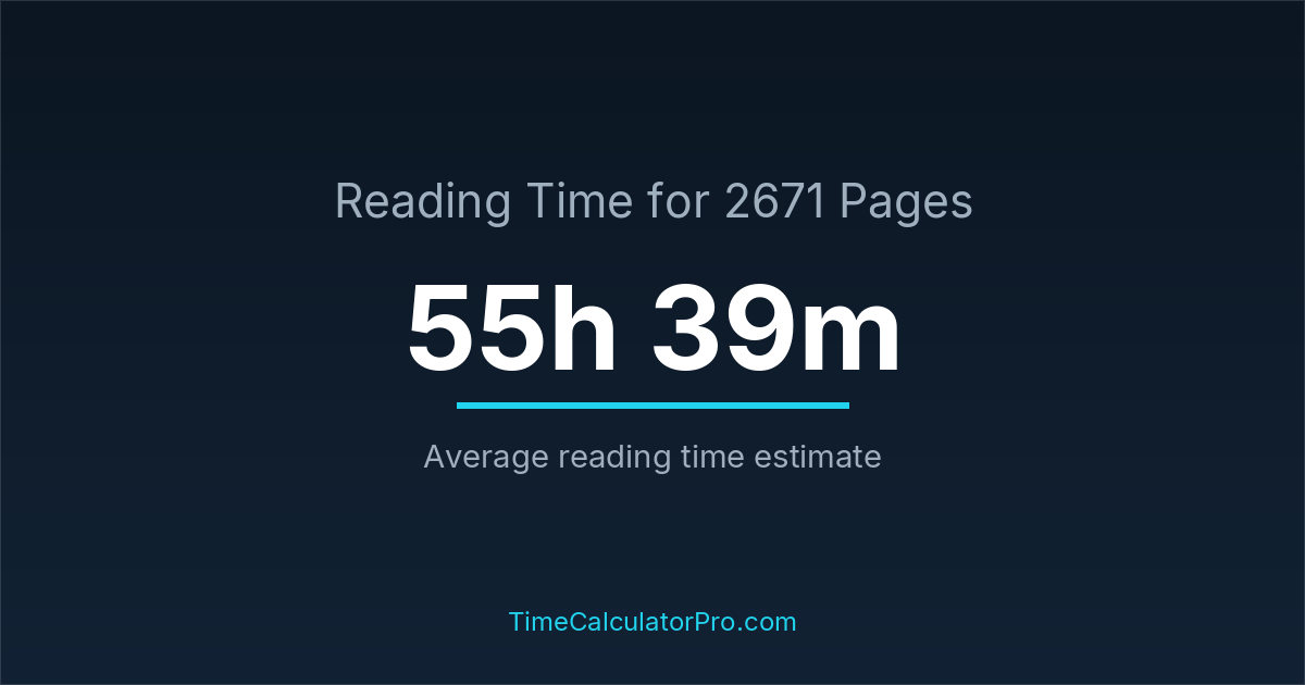 Reading 2671 pages usually takes approximately 55 hours and 39 minutes for the average reader, though this can vary depending on concentration and reading habits.