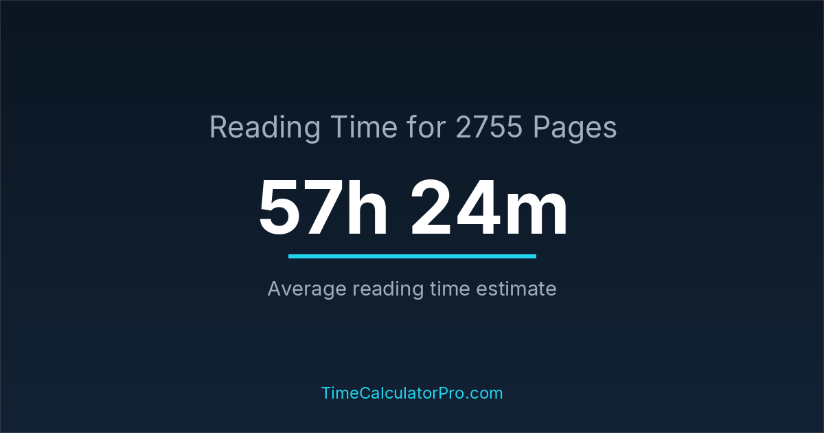 If you read at an average speed of 200 words per minute, reading 2755 pages will take approximately 57 hours and 24 minutes. This estimate assumes around 250 words per page, which is typical for most books.