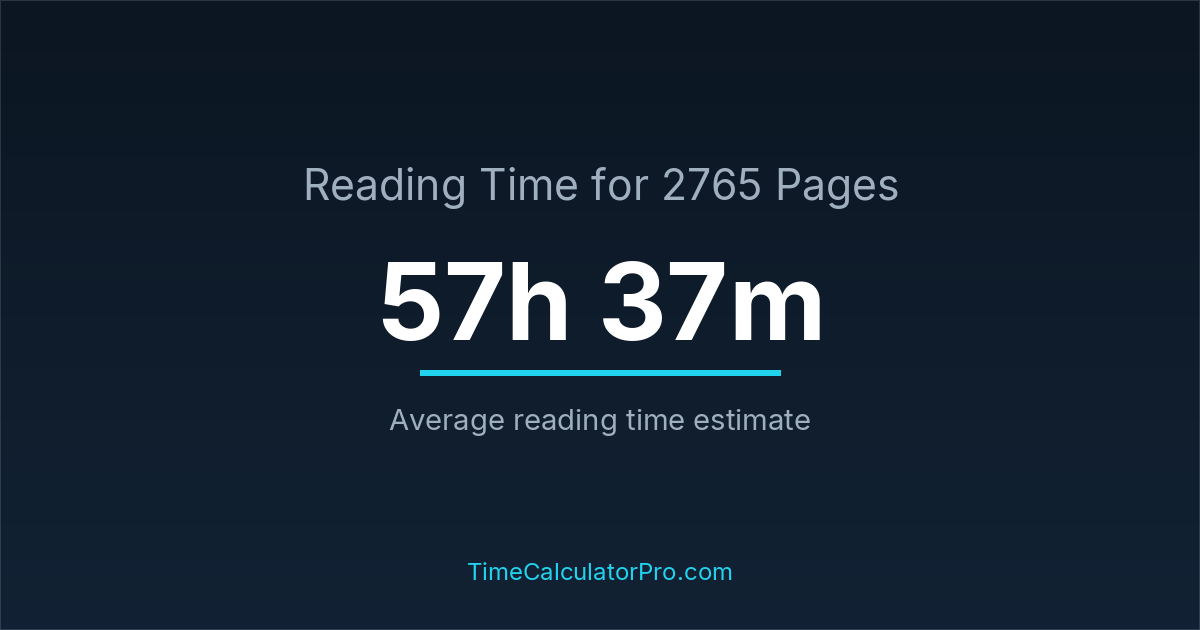 Reading 2765 pages takes about 57 hours and 37 minutes.