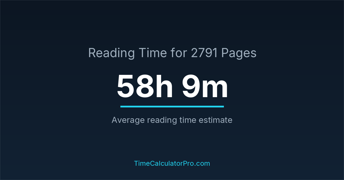 Reading 2791 pages takes about 58 hours and 9 minutes.