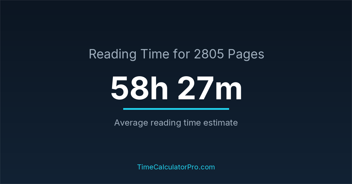 On average, reading 2805 pages may require about 58 hours and 27 minutes for most readers, assuming a standard reading pace and moderate difficulty.