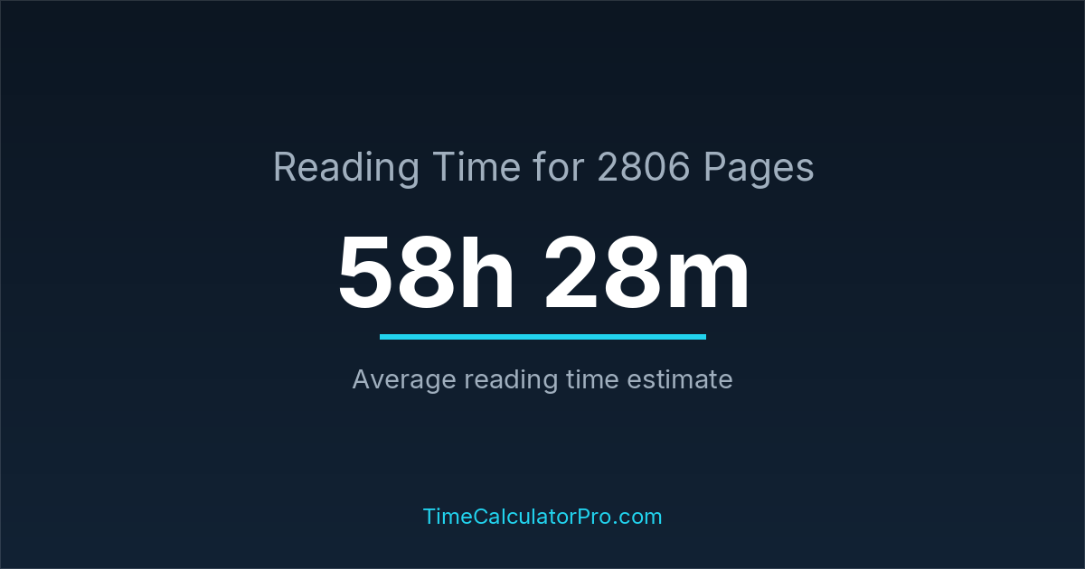 Many readers ask how long it takes to read 2806 pages, and the answer is typically around 58 hours and 28 minutes depending on reading speed.
