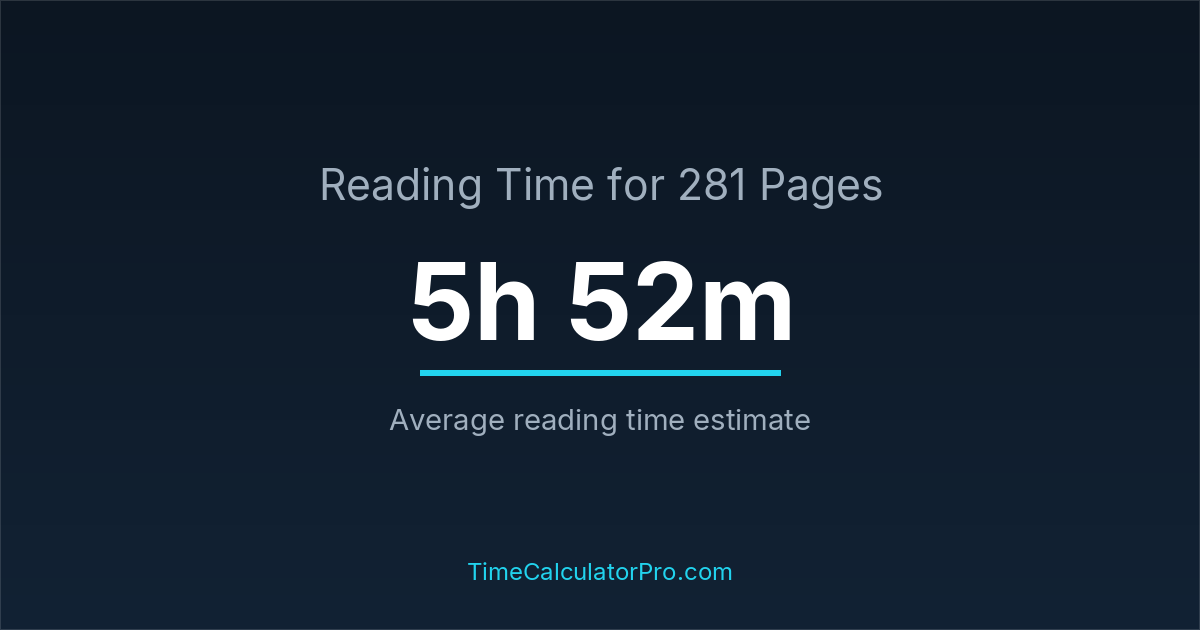Reading 281 pages takes about 5 hours and 52 minutes.