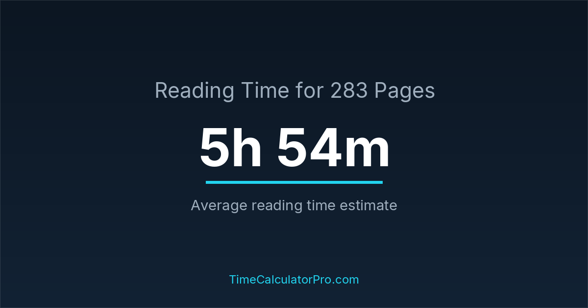 On average, reading 283 pages may require about 5 hours and 54 minutes for most readers, assuming a standard reading pace and moderate difficulty.