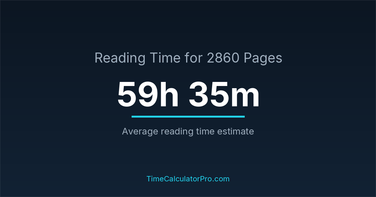 If you read at an average speed of 200 words per minute, reading 2860 pages will take approximately 59 hours and 35 minutes. This estimate assumes around 250 words per page, which is typical for most books.