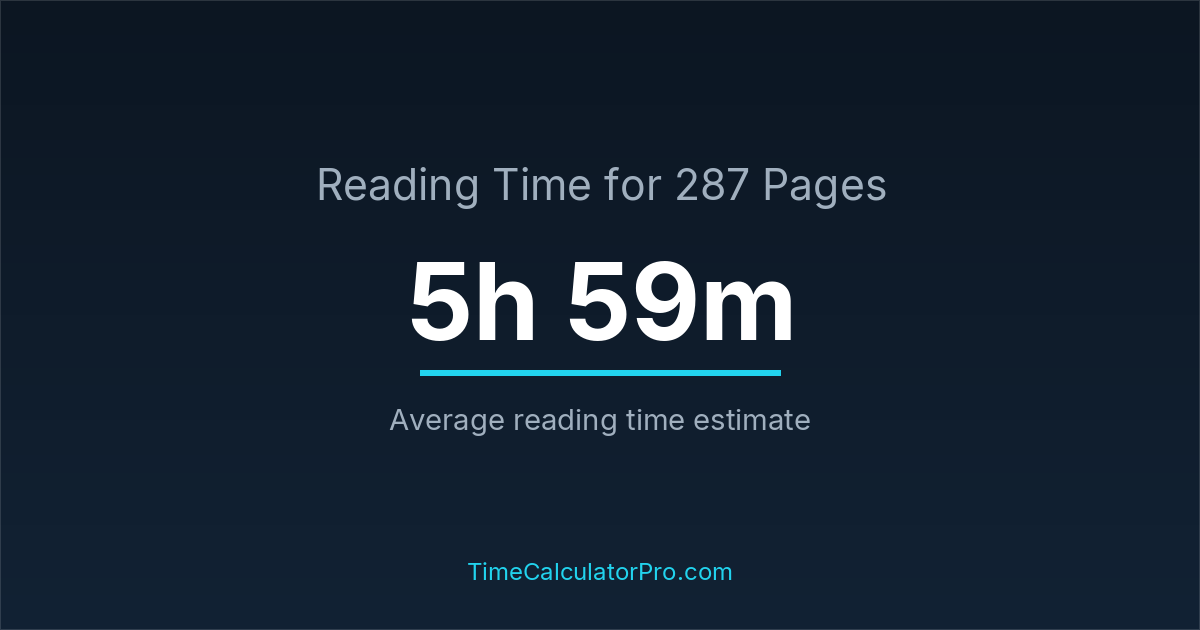 Reading 287 pages takes about 5 hours and 59 minutes.