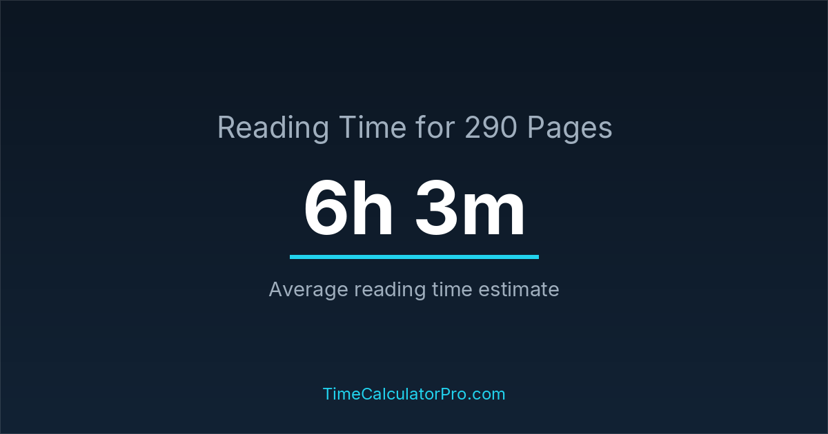 The average reading time for 290 pages is about 6 hours and 3 minutes, but this can change depending on the difficulty of the text.