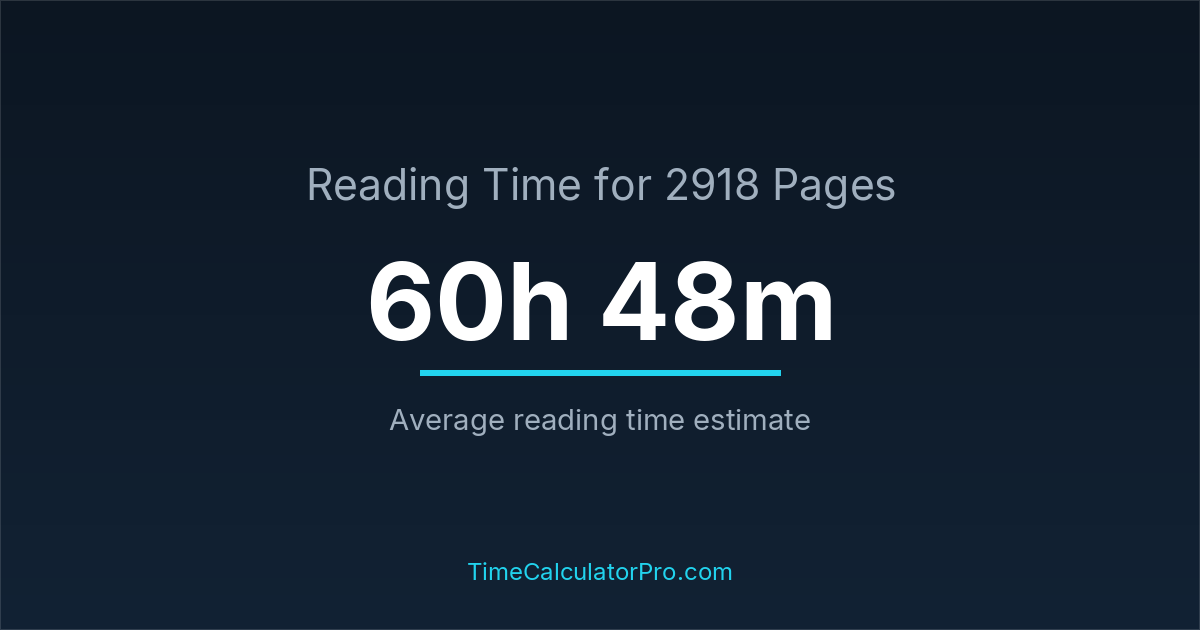 Reading 2918 pages usually takes approximately 60 hours and 48 minutes for the average reader, though this can vary depending on concentration and reading habits.