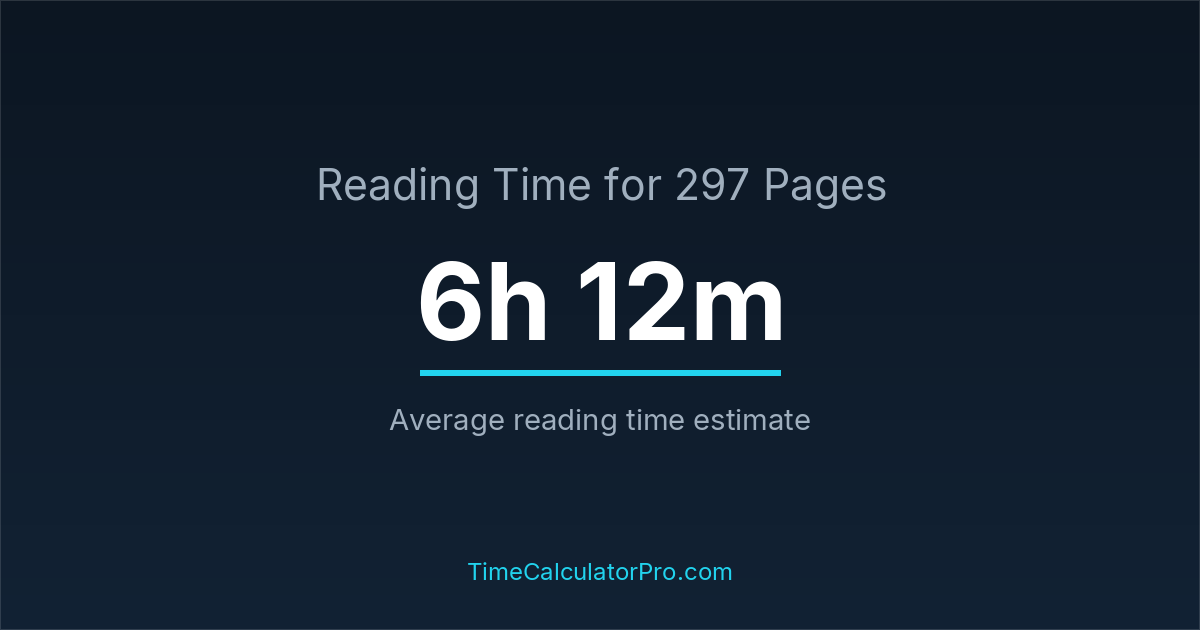 If you are wondering how long it takes to read 297 pages, the estimated reading time is roughly 6 hours and 12 minutes based on common reading speed averages.