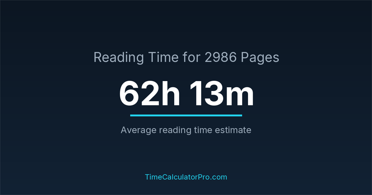 Reading 2986 pages takes about 62 hours and 13 minutes.
