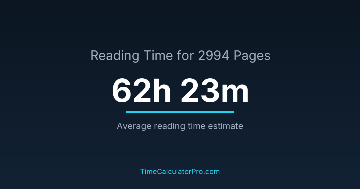 The average reading time for 2994 pages is about 62 hours and 23 minutes, but this can change depending on the difficulty of the text.