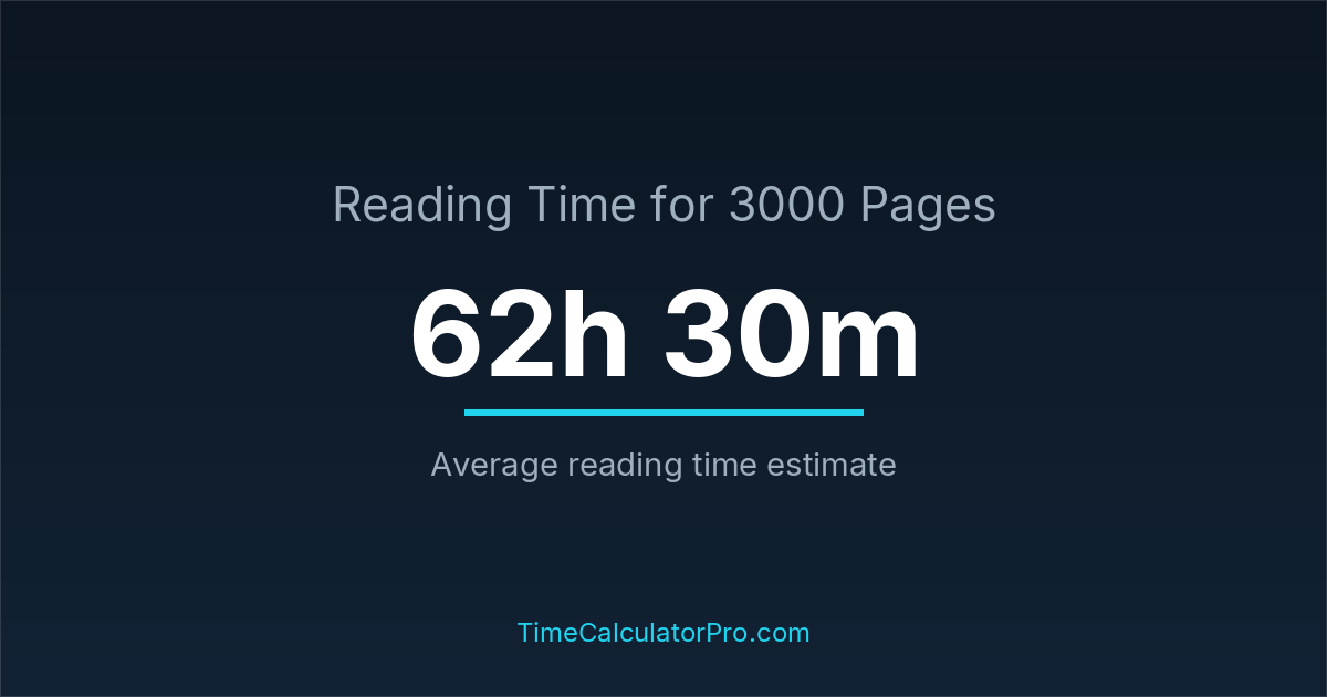 If you read at a steady pace, finishing 3000 pages should take approximately 62 hours and 30 minutes.