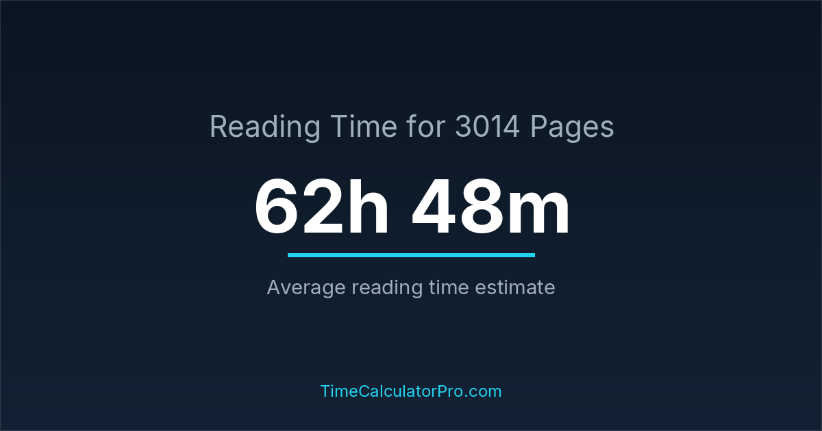 Reading 3014 pages takes about 62 hours and 48 minutes.