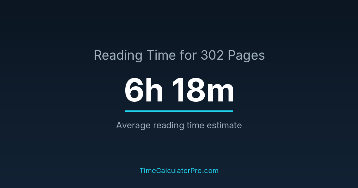 On average, reading 302 pages may require about 6 hours and 18 minutes for most readers, assuming a standard reading pace and moderate difficulty.