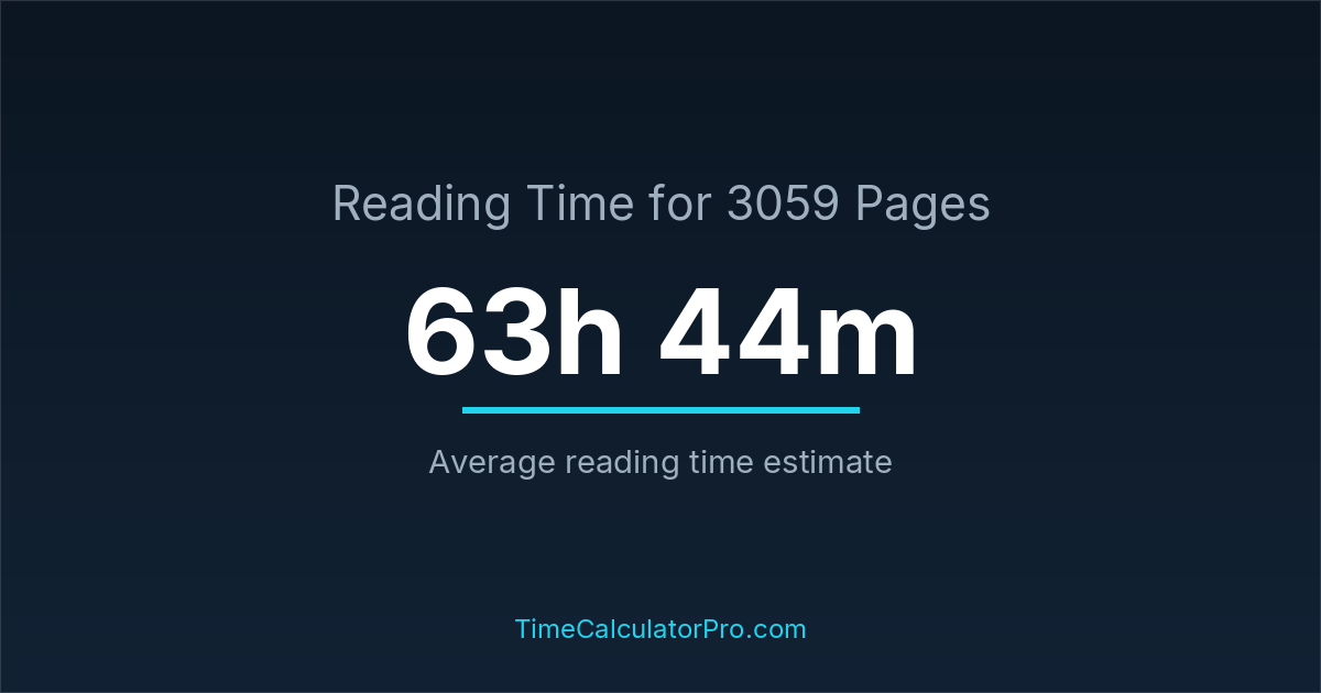 The average reading time for 3059 pages is about 63 hours and 44 minutes, but this can change depending on the difficulty of the text.