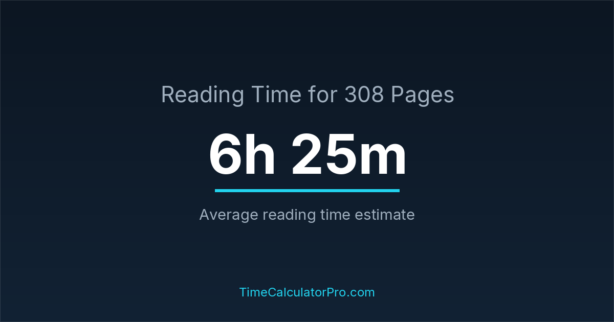 Reading 308 pages takes about 6 hours and 25 minutes.