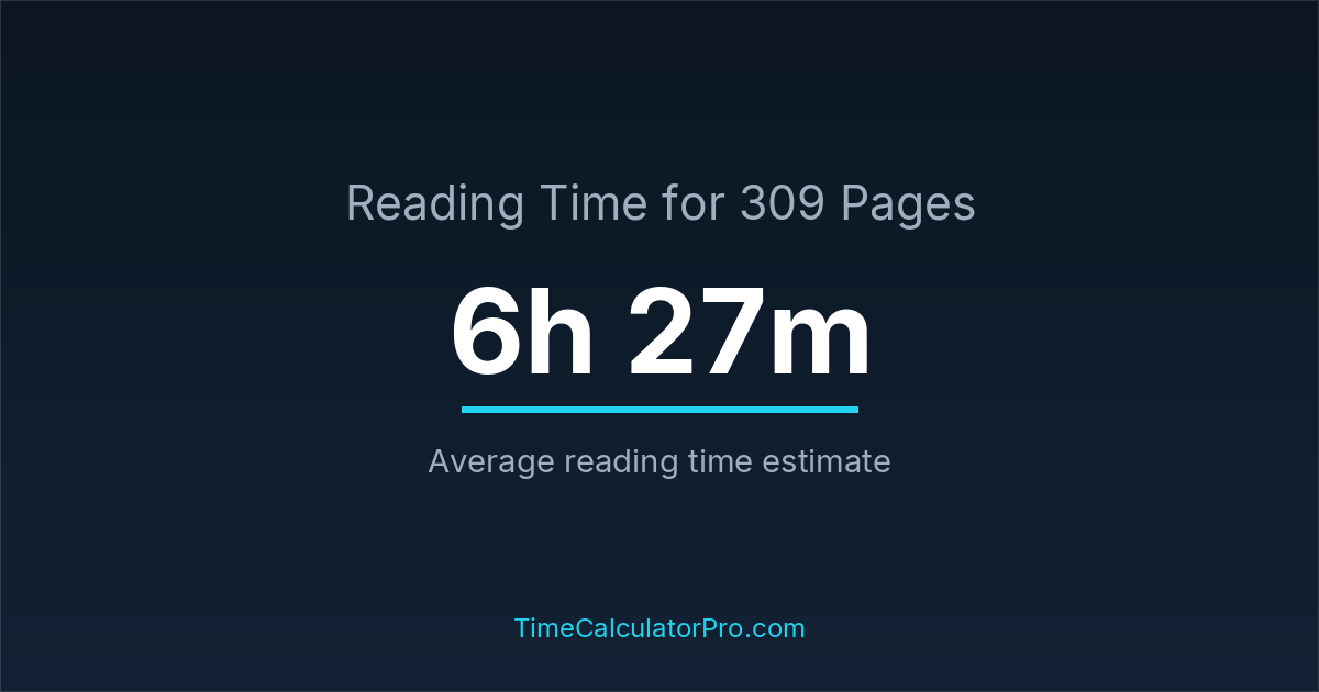 If you read at an average speed of 200 words per minute, reading 309 pages will take approximately 6 hours and 27 minutes. This estimate assumes around 250 words per page, which is typical for most books.