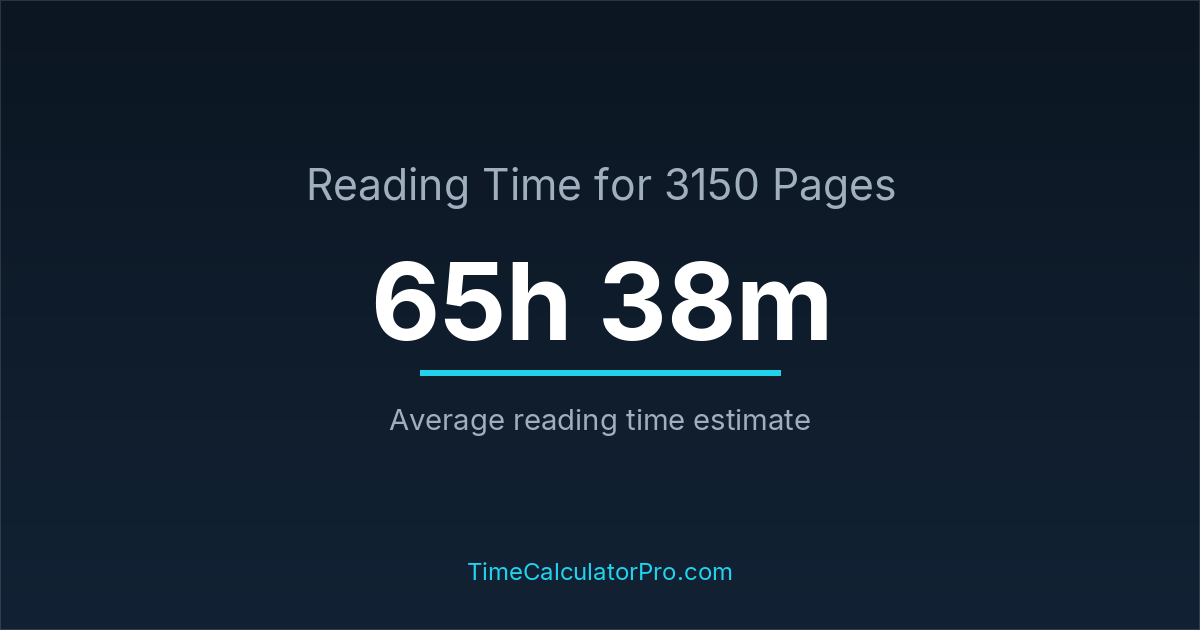 If you read at an average speed of 200 words per minute, reading 3150 pages will take approximately 65 hours and 38 minutes. This estimate assumes around 250 words per page, which is typical for most books.