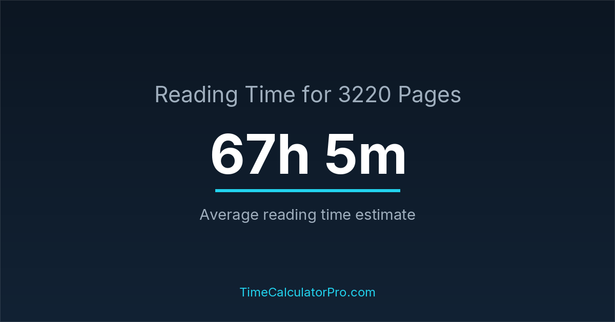 Using a reading time calculator, you can estimate that 3220 pages will take around 67 hours and 5 minutes to complete.