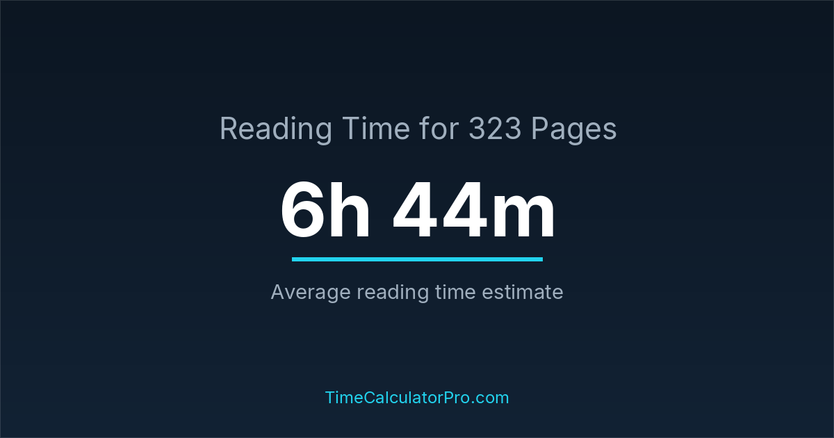 At an average reading speed of about 200 words per minute, many readers can comfortably finish 323 pages within the estimated time frame.