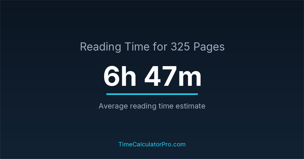 The average reading time for 325 pages is about 6 hours and 47 minutes, but this can change depending on the difficulty of the text.