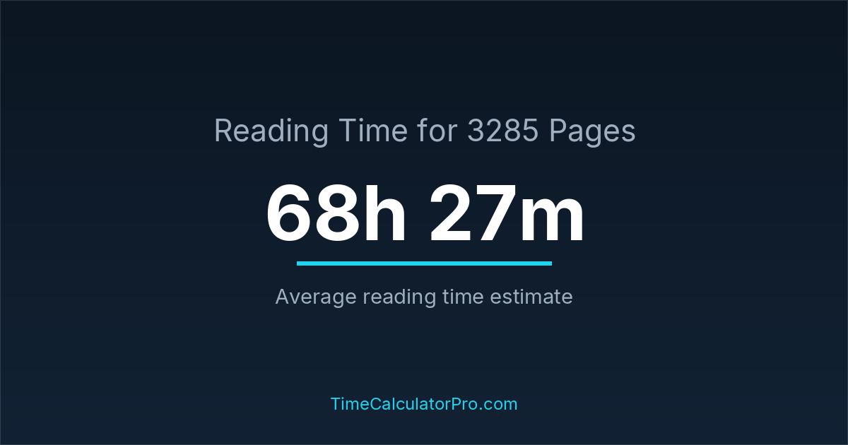 Reading 3285 pages takes about 68 hours and 27 minutes.
