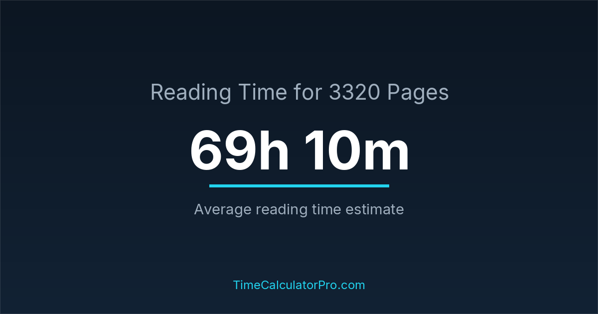 Reading 3320 pages takes about 69 hours and 10 minutes.