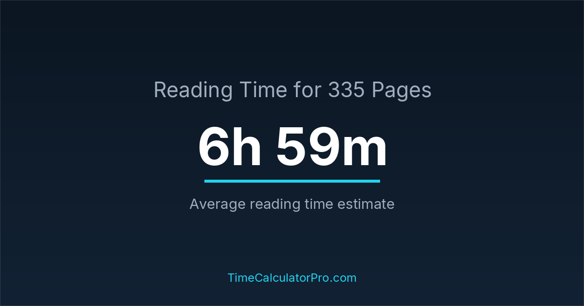 If you read at an average speed of 200 words per minute, reading 335 pages will take approximately 6 hours and 59 minutes. This estimate assumes around 250 words per page, which is typical for most books.