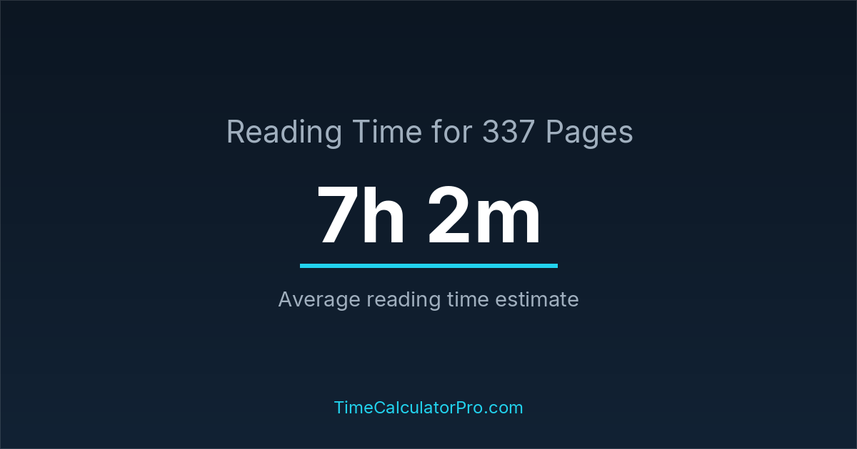 If you read at an average speed of 200 words per minute, reading 337 pages will take approximately 7 hours and 2 minutes. This estimate assumes around 250 words per page, which is typical for most books.