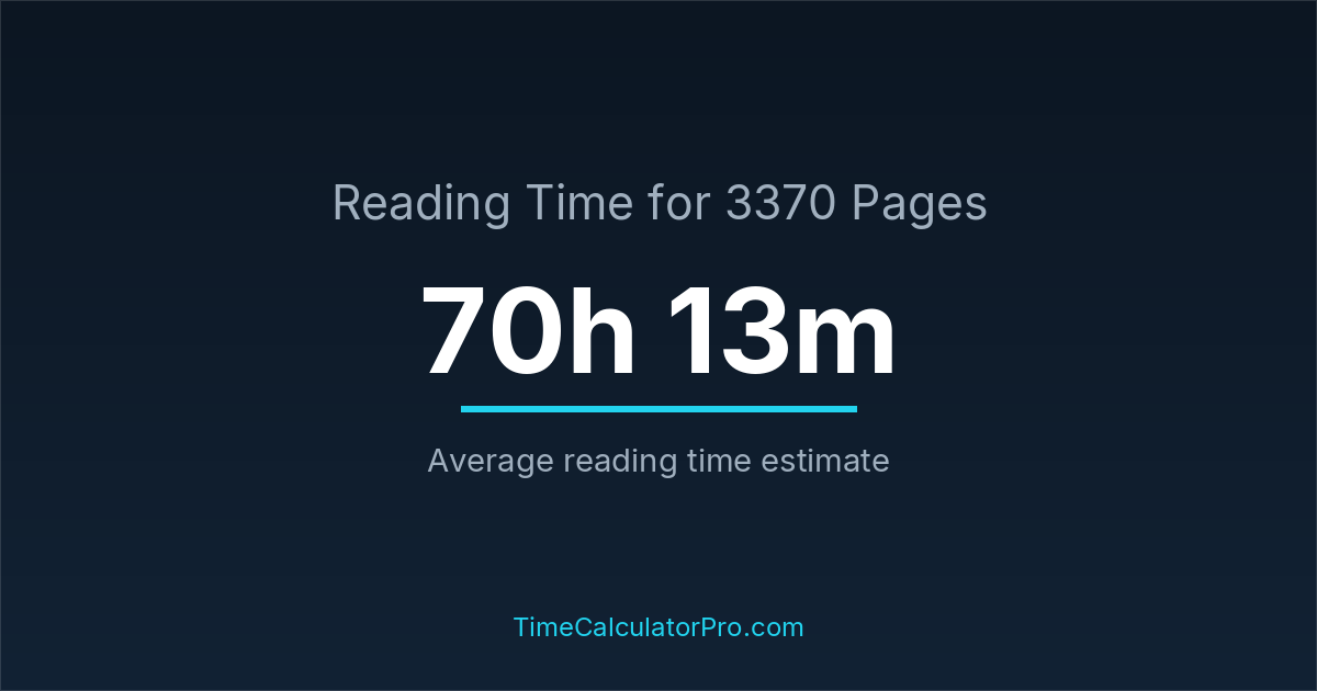 Reading 3370 pages takes about 70 hours and 13 minutes.