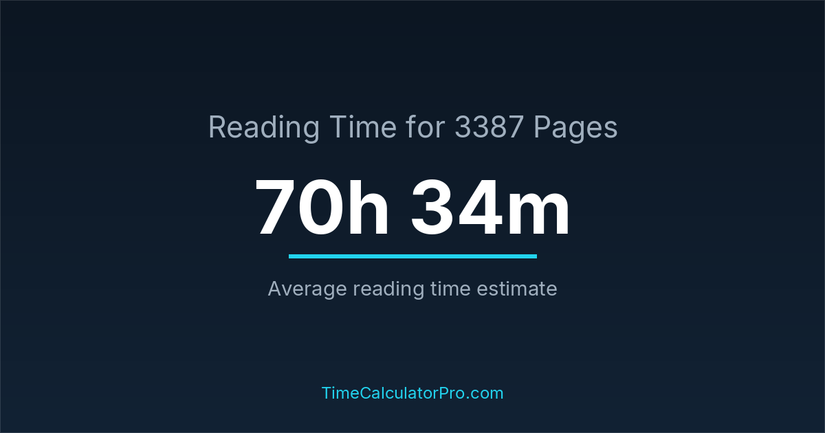 Reading 3387 pages takes about 70 hours and 34 minutes.