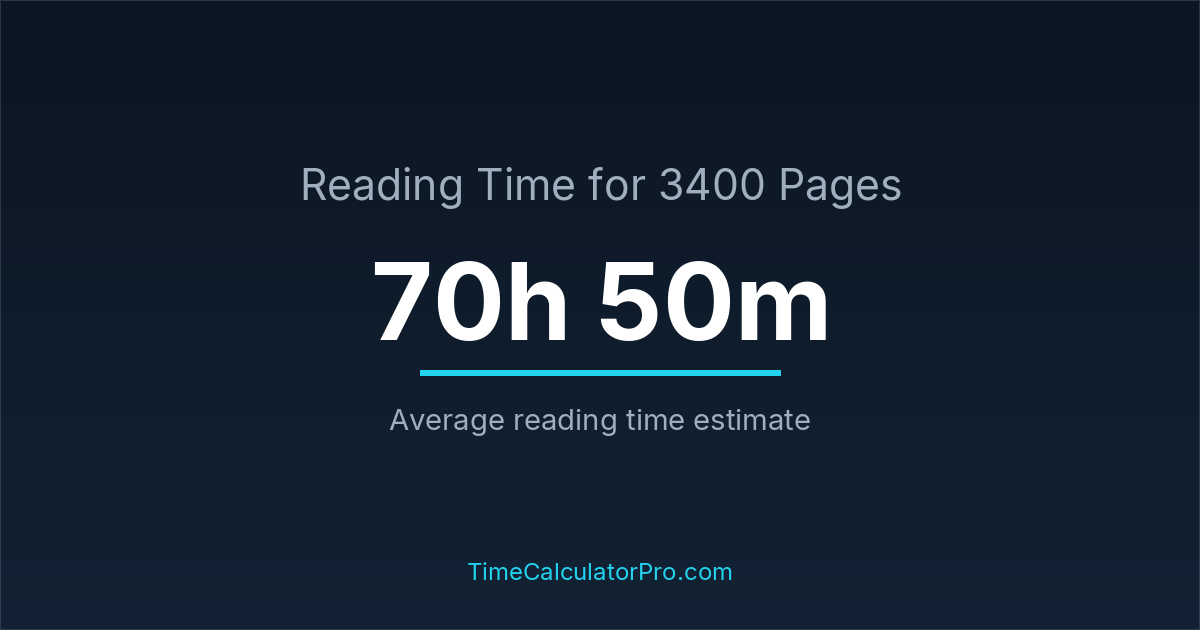 Reading 3400 pages takes about 70 hours and 50 minutes.