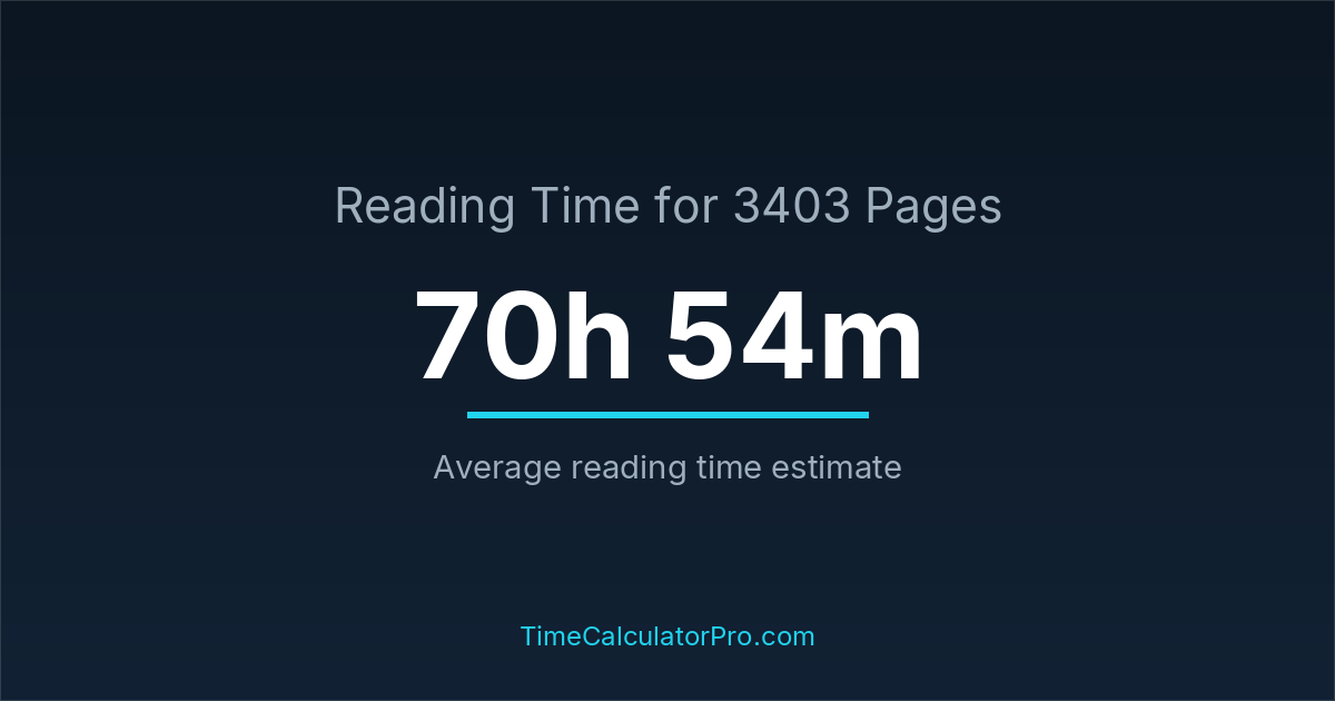 If you read at an average speed of 200 words per minute, reading 3403 pages will take approximately 70 hours and 54 minutes. This estimate assumes around 250 words per page, which is typical for most books.