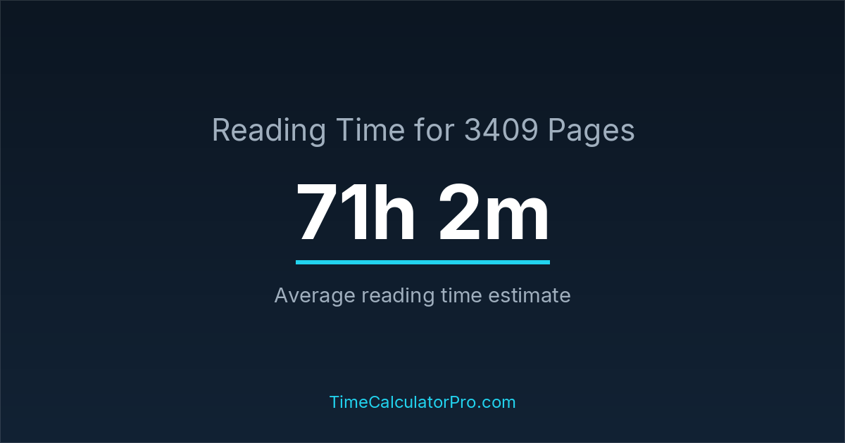 The average reading time for 3409 pages is about 71 hours and 2 minutes, but this can change depending on the difficulty of the text.