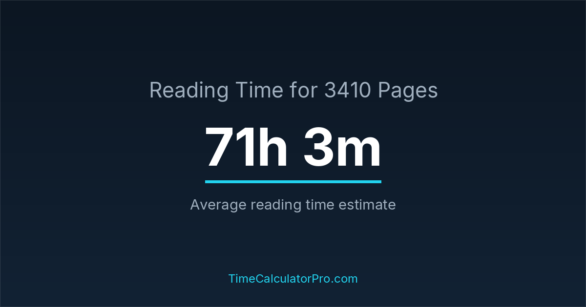 Reading 3410 pages usually takes approximately 71 hours and 3 minutes for the average reader, though this can vary depending on concentration and reading habits.