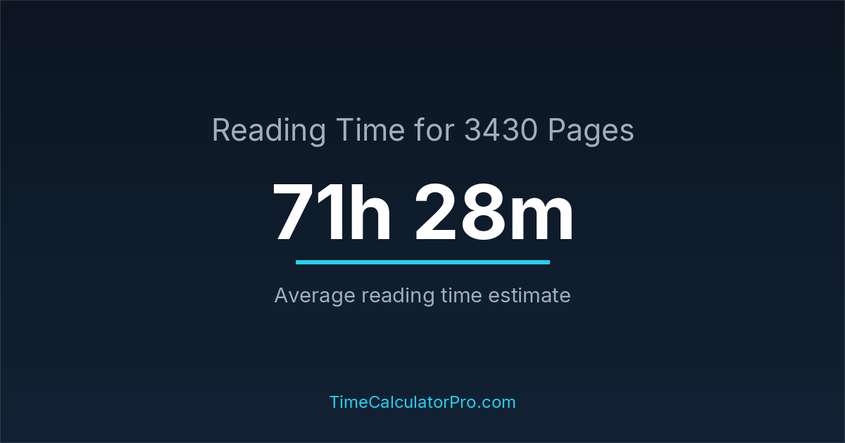 Reading 3430 pages takes about 71 hours and 28 minutes.