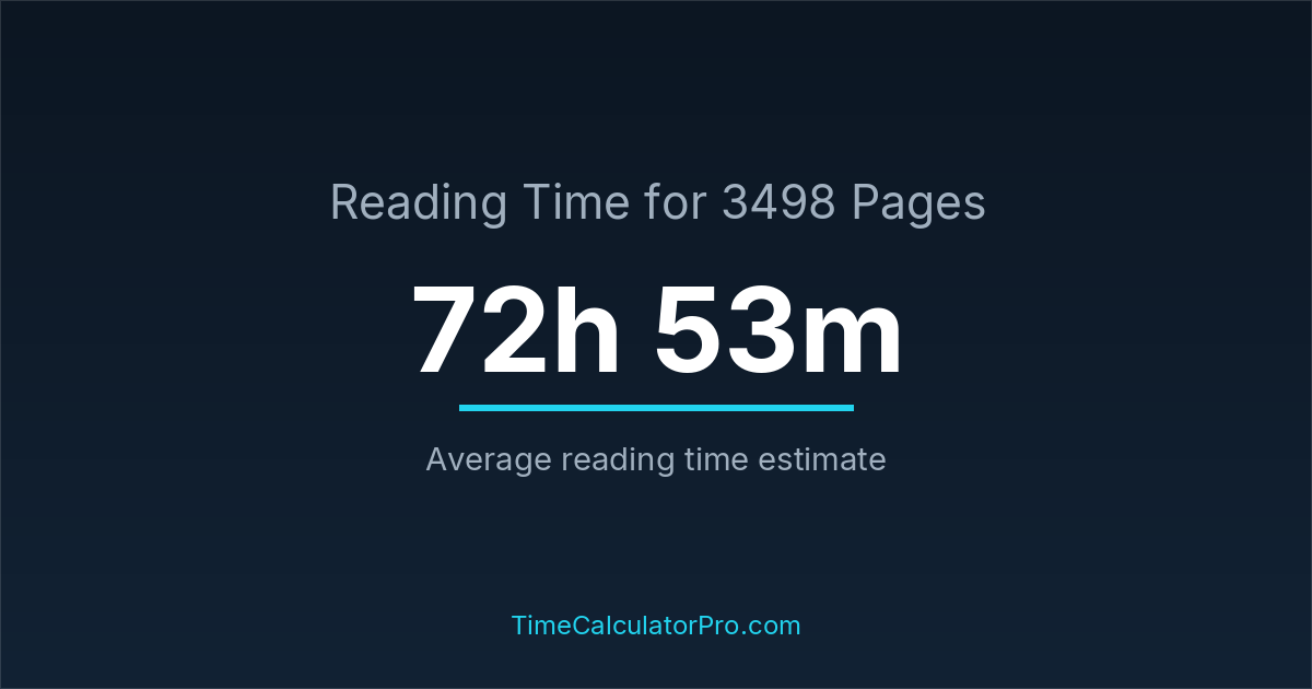 If you read at an average speed of 200 words per minute, reading 3498 pages will take approximately 72 hours and 53 minutes. This estimate assumes around 250 words per page, which is typical for most books.