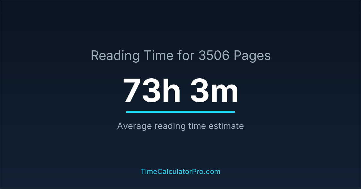 Reading 3506 pages usually takes approximately 73 hours and 3 minutes for the average reader, though this can vary depending on concentration and reading habits.
